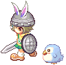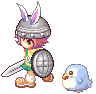 見知らぬ兎さんとで。わーい、装備一緒だ!